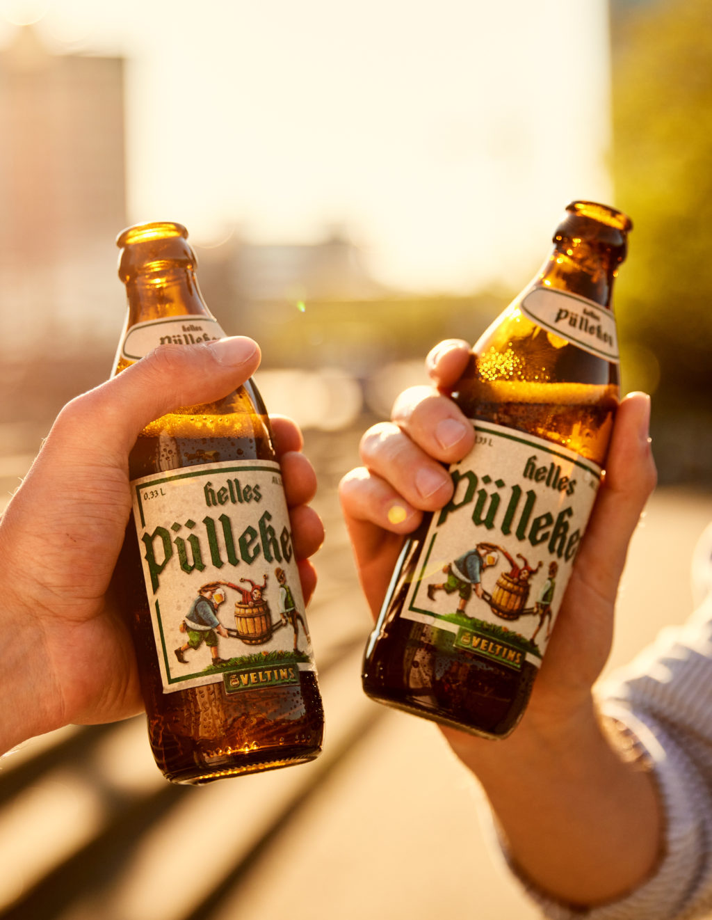 Das Pülleken in der handlichen Drittel-Liter-Flasche in Euro-Flaschen-Optik mit dem tänzelnden Harlekin auf dem impulsstarken Etikett ist in wenigen Monaten zu einem Sympathieträger für einen neuen Biergeschmack und für eine neue Marke mit regionaler Prägung geworden. Das noch junge Produkt der Brauerei C. & A. Veltins nimmt gerade einen erfreulichen Erfolgsweg und übertraf mit einem Ausstoß von über 200.000 hl im Geschäftsjahr 2021 alle Erwartungen. An diesen Erfolg wird die Brauerei C. & A. Veltins im Jahr 2022 weiter anknüpfen, immerhin ist das Pülleken die erfolgreichste Einführung in der Geschichte des Grevensteiner Familienunternehmens. Nie zuvor konnte ein Neuprodukt der Premium-Brauerei innerhalb von so kurzer Marktpräsenz und dazu noch unter hartem Wettbewerbsdruck im Handel so überzeugend wirken. „Sowohl der rasche Distributionsaufbau als auch die Wiederkäufe der Verbraucher beweisen die hohe Sympathie und lassen eine weiter steigende Nachfrage erwarten. Als Veltins-Antwort auf einen unbeschwerten Biergenuss in schwieriger Zeit konnte das junge Produkt ein deutliches Markenstatement setzen“, sagt Dr. Volker Kuhl, Geschäftsführer Marketing/Vertrieb der Brauerei C. & A. Veltins. „Es war die richtige Entscheidung, mit einem innovativen Produkt- und Markenkonzept den Sortentrend des Hellen völlig neu zu interpretieren.“ Das Pülleken schafft eine deutliche Differenzierung zur weißblauen Sortenfolklore, die dem Verbraucher wenig Orientierung bietet.