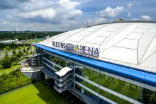Mehr Energieeffizienz zum Start der Bundesligasaison 2016/17 auf Schalke: Vier Meter hoch und 42 Meter lang ist der Schriftzug, der seit elf Jahren die Südkurve der Veltins-Arena, Heimspielstätte des FC Schalke 04, erstrahlen lässt. Zwölf einzelne Buchstaben und das etwa acht Meter breite und vier Meter hohe Arena-Logo wurden nun mit moderner und umweltfreundlicher Lichttechnik ausgestattet – ein energieeffizientes und langlebiges Innenleben macht’s möglich. Die Außenwerbungexperten von Neon Wertz kümmerten sich zuerst um den aufwendigen Aufbau des zwei Etagen hohen Gerüstes, um anschließend in filigraner Detailarbeit insgesamt mehr als 12.000 LEDs einzusetzen. Die bereits von Weitem erkennbare Veltins-Arena Beschriftung leuchtet nun mit einer Strahlkraft von 2.700 Watt. Die Buchstaben des Wortes „Arena“ erstrahlen selbstverständlich mit blauen LEDs. Ebenfalls ausgetauscht wurde das Leuchtmittel der zwei Schriftzüge im Eingangsbereich der Veltins-Arena. Jeder Leuchtname ist hier 1,70 Meter hoch und 20 Meter lang und beinhaltet nun 2.850 LEDs. Hier wird eine Gesamtleistung von 1.050 Watt pro Schriftzug erreicht. „Damit kann nun dem Wunsch nach einer umweltfreundlichen und weniger wartungsintensiven Alternative – auch in dieser erstaunlichen Größenordnung Rechnung getragen werden“, so Herbert Sollich, Marketingdirektor der Brauerei C. & A. Veltins. Durch die Umstellung der Anlagen auf LED wird eine Einsparung im Verbrauch von 60% erreicht. Damit ist die Ära der Neon-Röhre endgültig Geschichte.